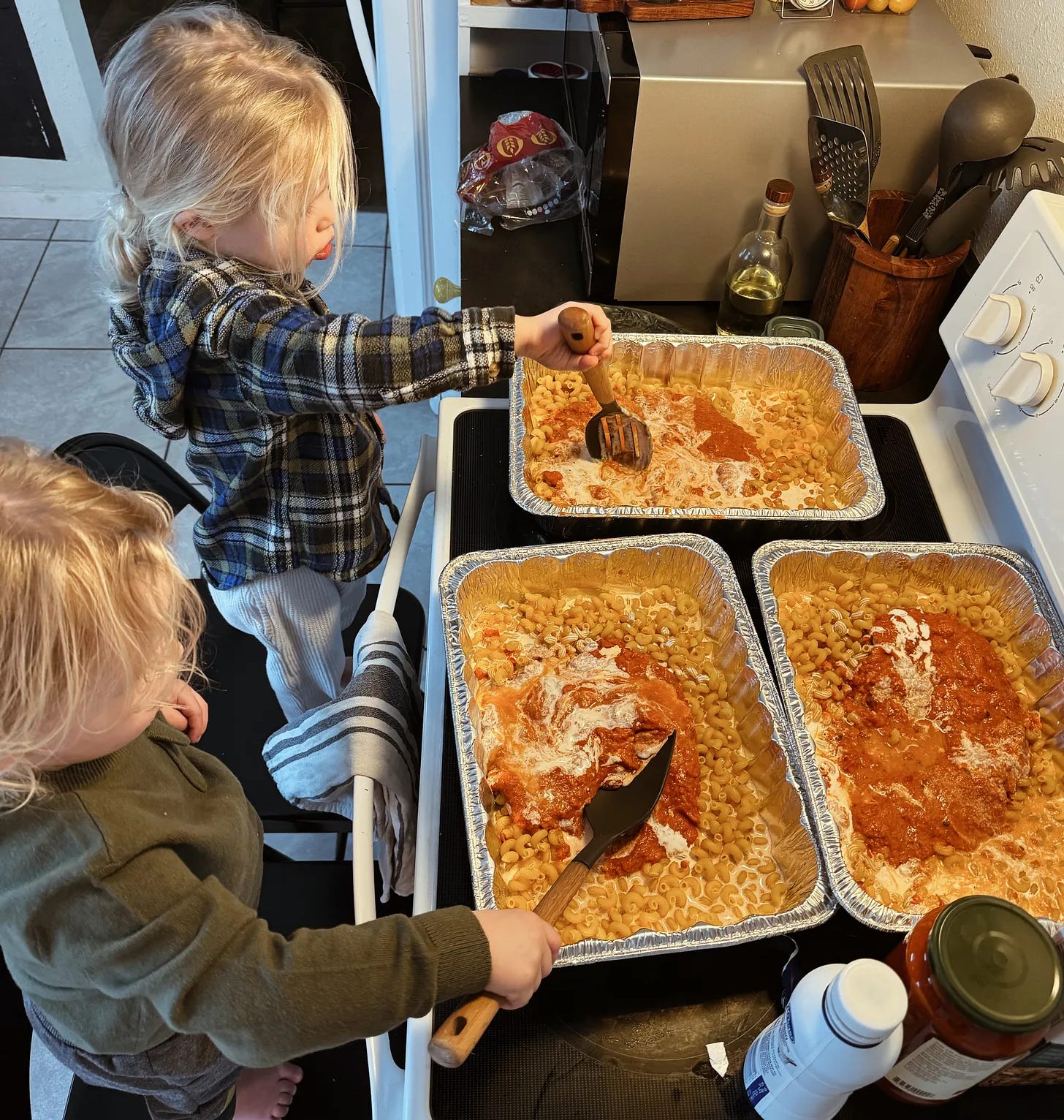 However, the small, intimate, restful gathering I had been expecting just went out the window. Now I was calculating four more families, all with rambunctious toddlers, into our plans — dairy and gluten allergies included. And I was making your delicious pasta bake, which we both know is full of both dairy and gluten! It’s a day before the gathering, and I’ve already done all the shopping. Do I have enough food? Is there someone I can borrow dairy-free cheese from? Having that many kids in the house with all these adults is going to be insane. It’s not like we can extend the party outside — it’s winter in Montana!